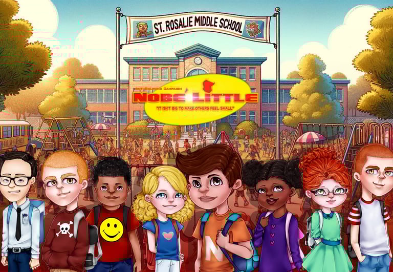 At the heart of "Nobe Little: It Isn’t Big to Make Others Feel Small" lies St. Rosalie Middle School, the fictional yet meaningful setting for our animated series. This school represents more than just a place of learning—it's a symbol of hope, resilience, and the power of kindness. Its name, "St. Rosalie," was chosen in honor of Rosalie Avila, a beautiful young girl whose life tragically reminds us of the critical importance of combating bullying and fostering a culture of love and acceptance.